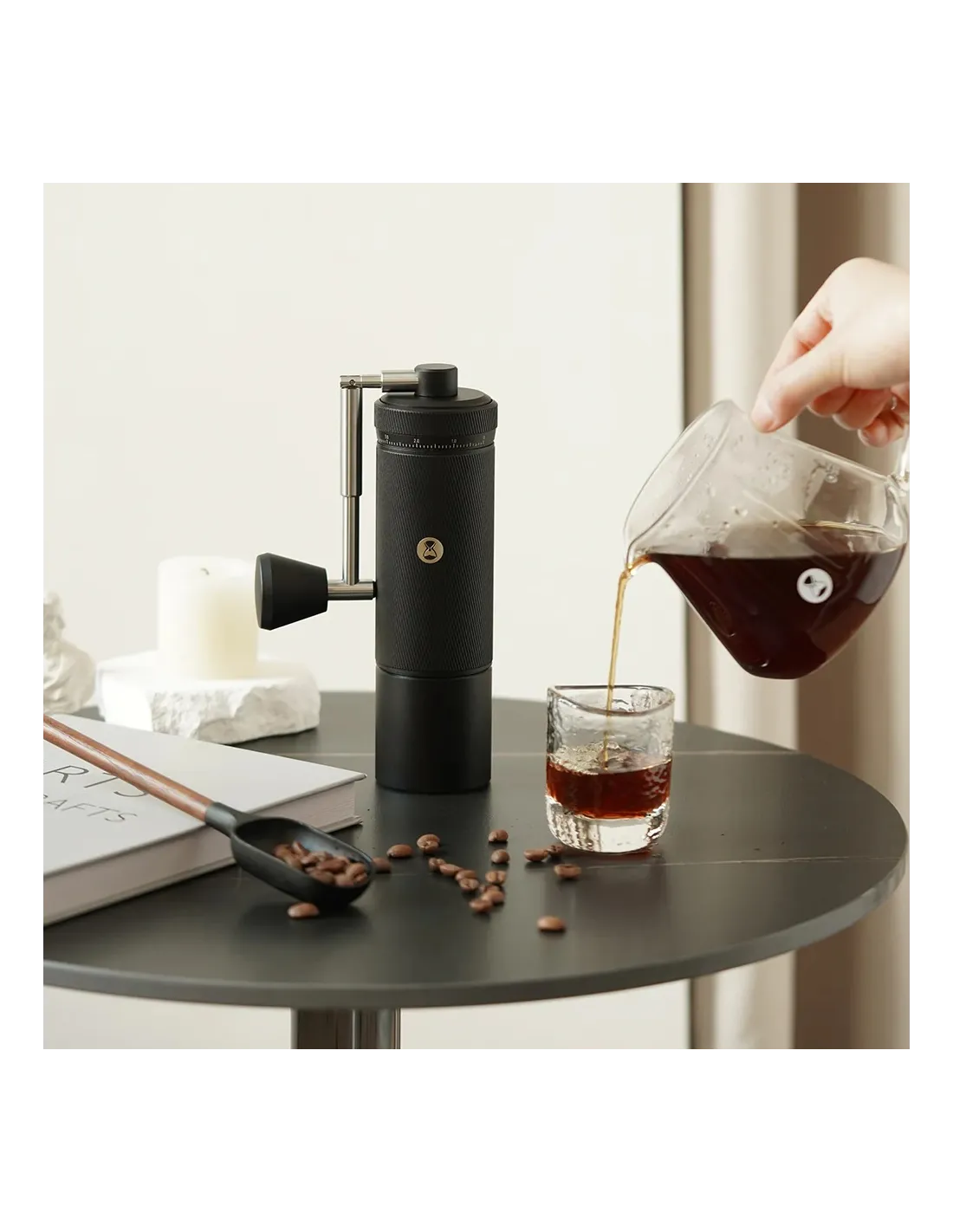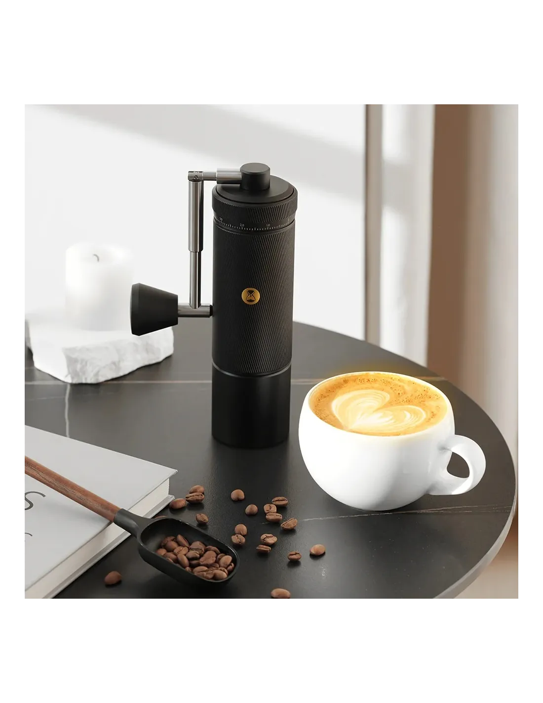 Последният модел на мелницата Chestnut S3 на Timemore с външна скала за регулиране на грубостта на смилане, подобна на тази на обектива на фотоапарат.