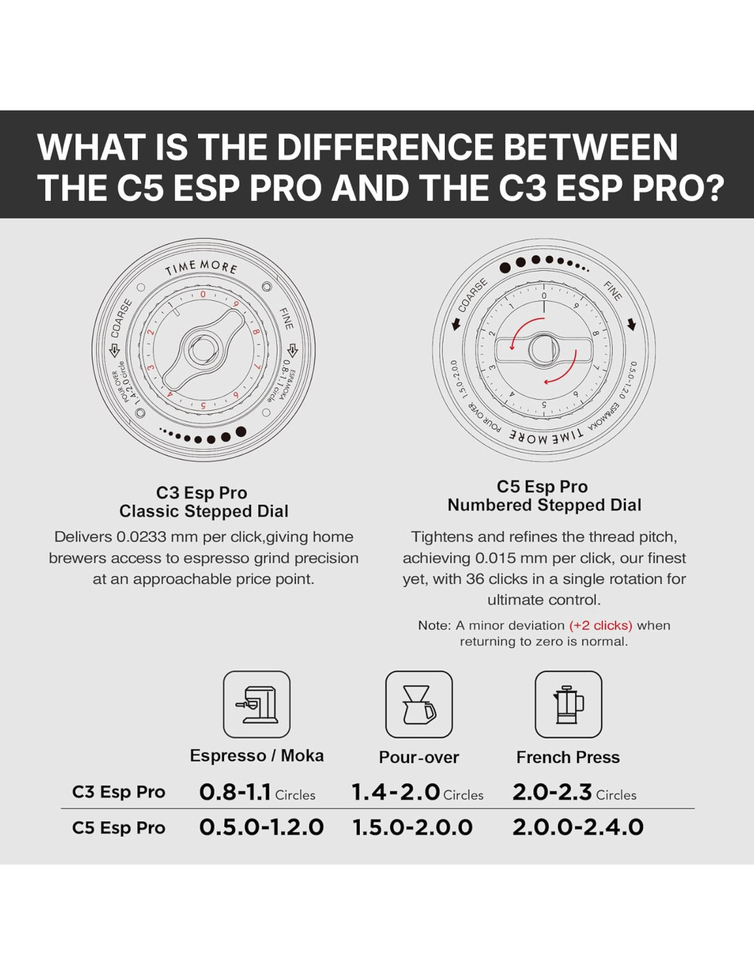 Моделът ESP PRO е разработен специално за еспресо. Новият пръстен за регулиране позволява 50 стъпки на грубост с финост 15 микрона на коляно, така че можете да настроите рецептата си с максимална прецизност. Всяка стъпка е осезаема, плавна и предлага чудесна тактилна реакция - идеална за тези, които обичат да експериментират с екстракцията.