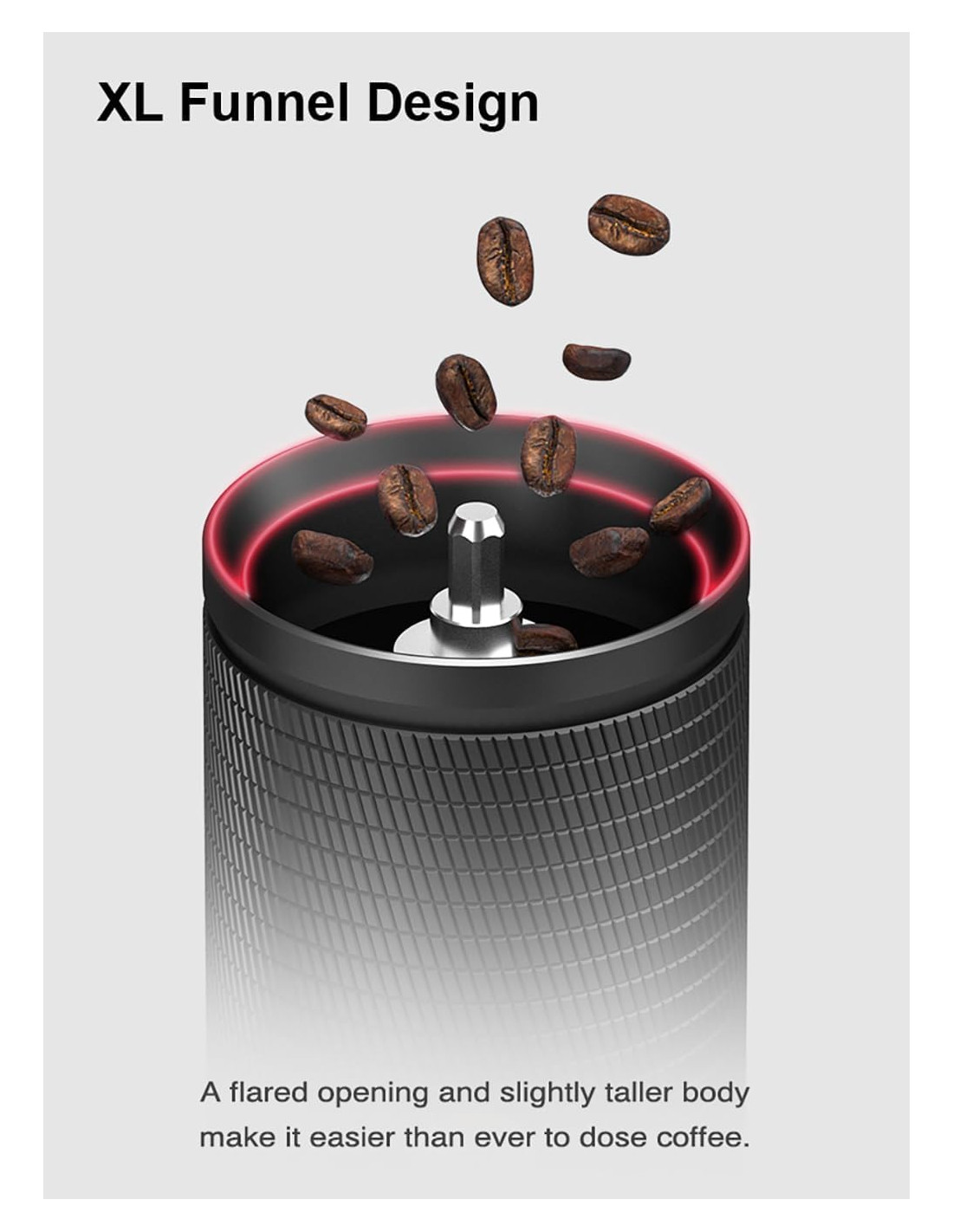 Ръчната шлифовъчна машина Timemore C5 Pro Black съчетава прецизно шлифоване, солидна конструкция и елегантен дизайн. Благодарение на новите шлифовъчни камъни S2C-042-III тя предлага по-бързо и по-равномерно шлифоване с прецизно регулиране на грубостта в 48 степени. Идеална за любителите на методите pour-over и за домашните експериментатори на еспресо.