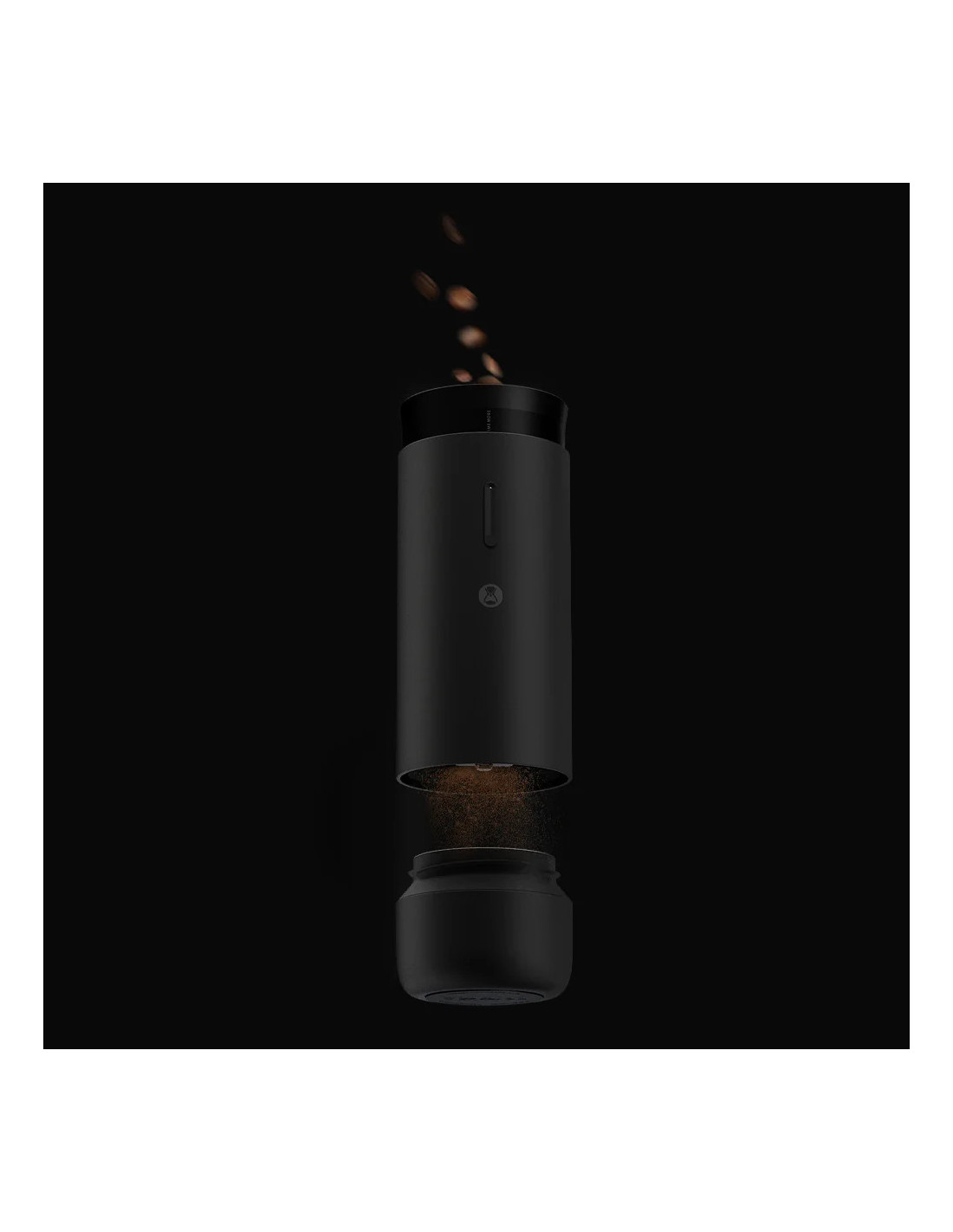 Патентованият накланящ се бункер побира до 45 г кафе и намалява задържането и "пукането" благодарение на интелигентния дизайн. Зареждането чрез USB-C отнема около 3 часа и осигурява енергия за до 20 изстрела еспресо или 35 кафета за обливане.