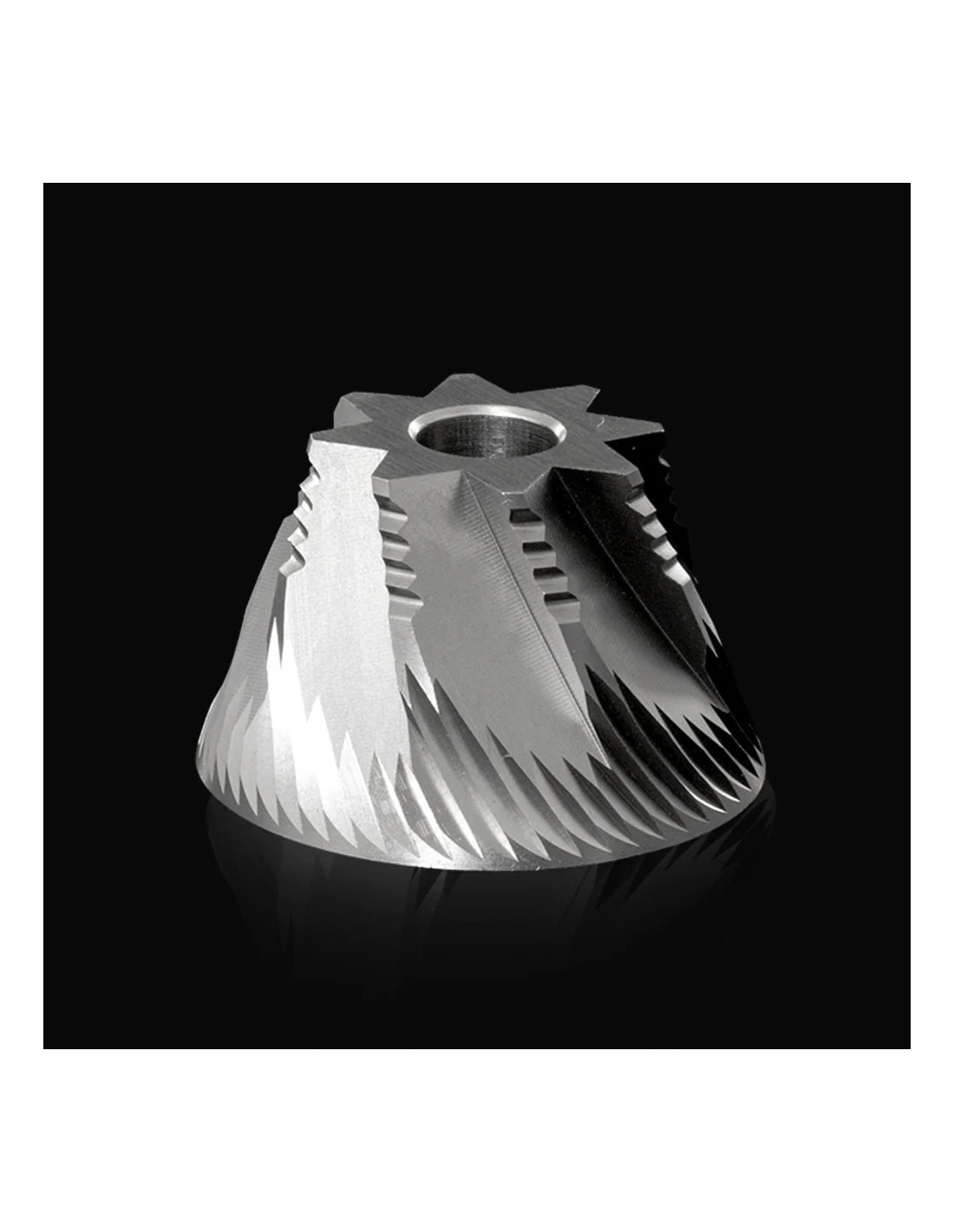 Във вътрешността се намират професионални 42-милиметрови конични камъни S2C-042-EI, фрезовани с помощта на 5-осен CNC от закалена стомана (58 HRC). Те предлагат прецизна настройка от 0,025 мм, което улеснява прецизната настройка на смилането за еспресо, мока, V60 или френска преса.