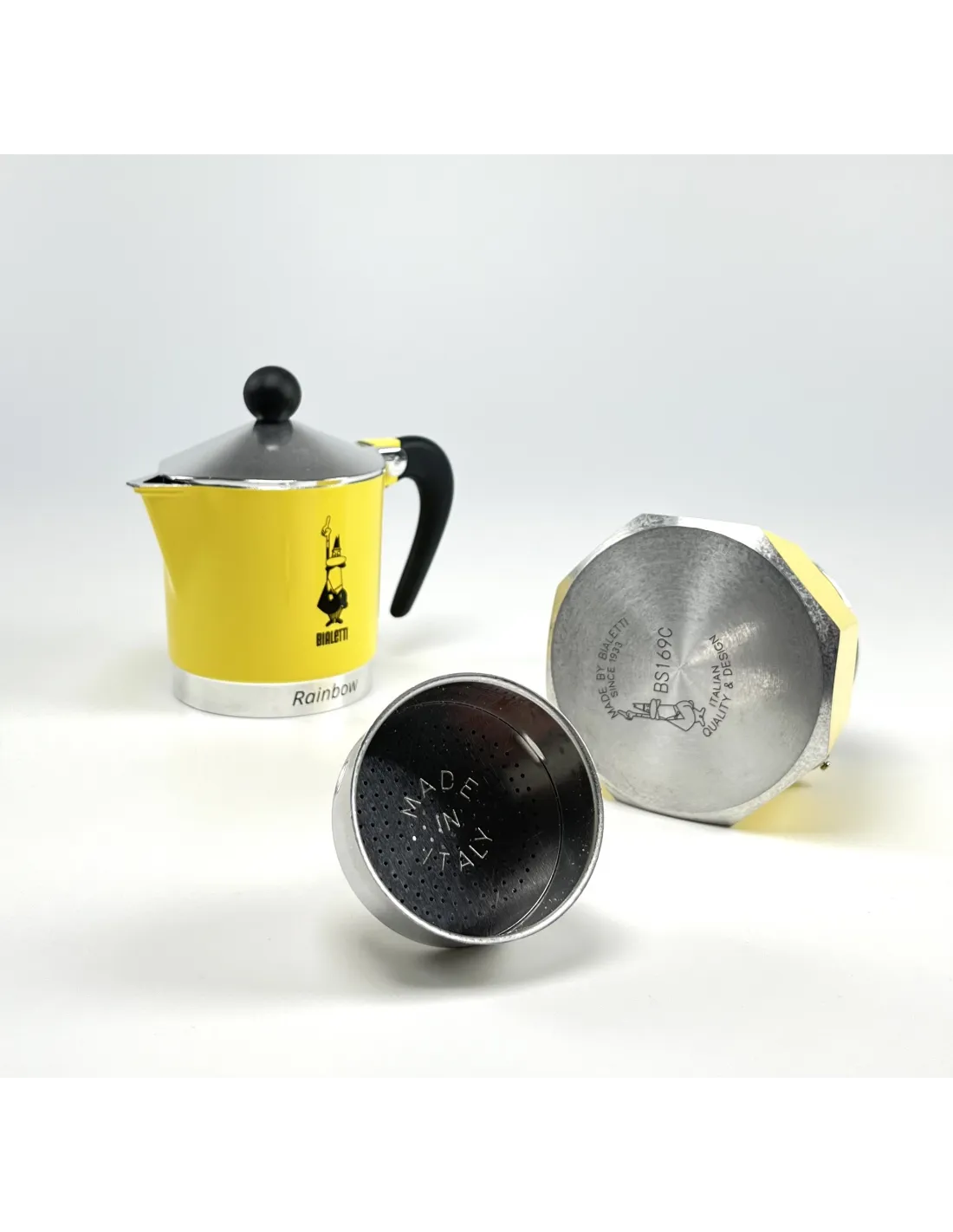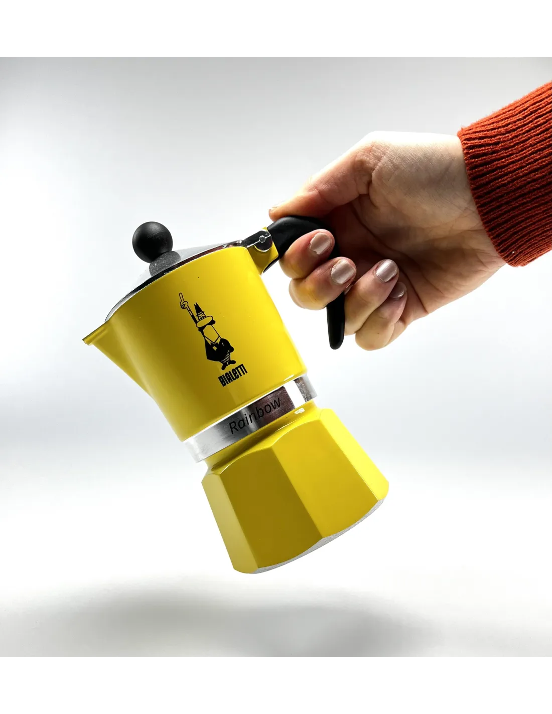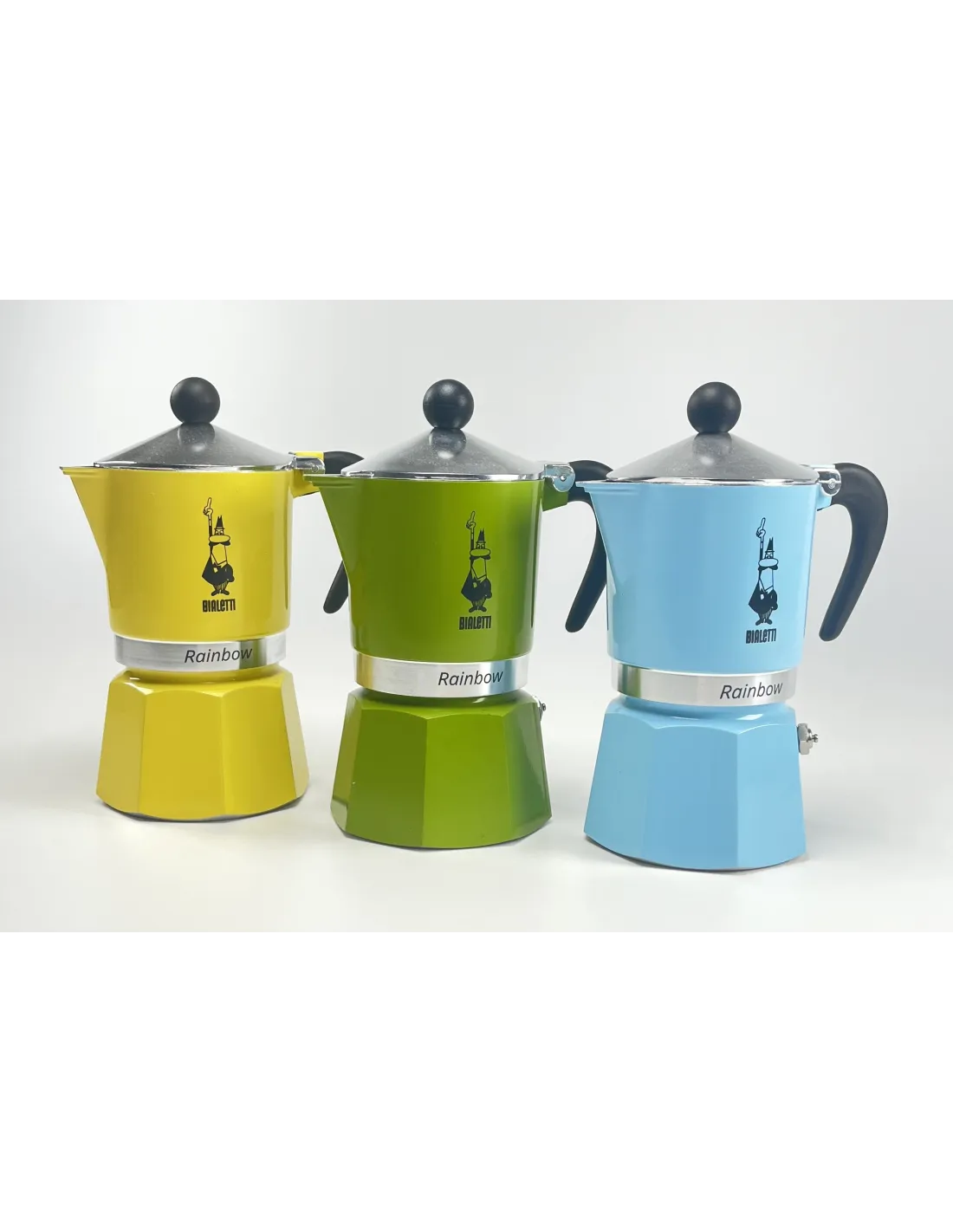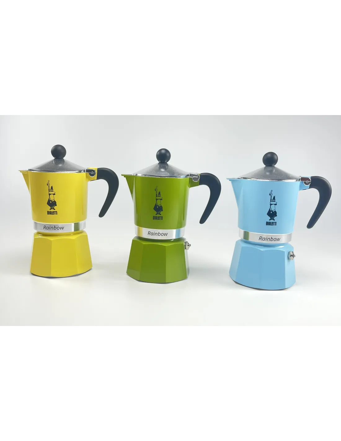 Стилен алуминиев мока кана Bialetti Rainbow на италианската компания Bialetti за традиционно приготвяне на по-силно кафе. Подходяща за 3 чаши. Капацитет: приблизително 130 ml.
