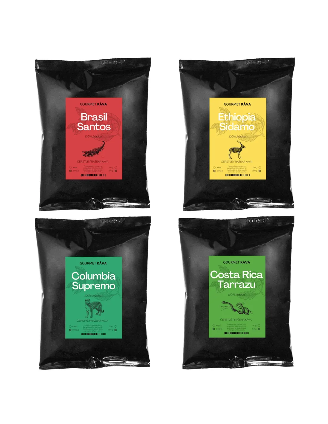 Тези 4 кафета са идеалното напречно сечение на нашите кафета, от най-доброто бразилско Santos , през перфектно балансираните Costa Rica Tarazza и Colombia Supremo , до приятно плодовото Ethiopia Sidamo .