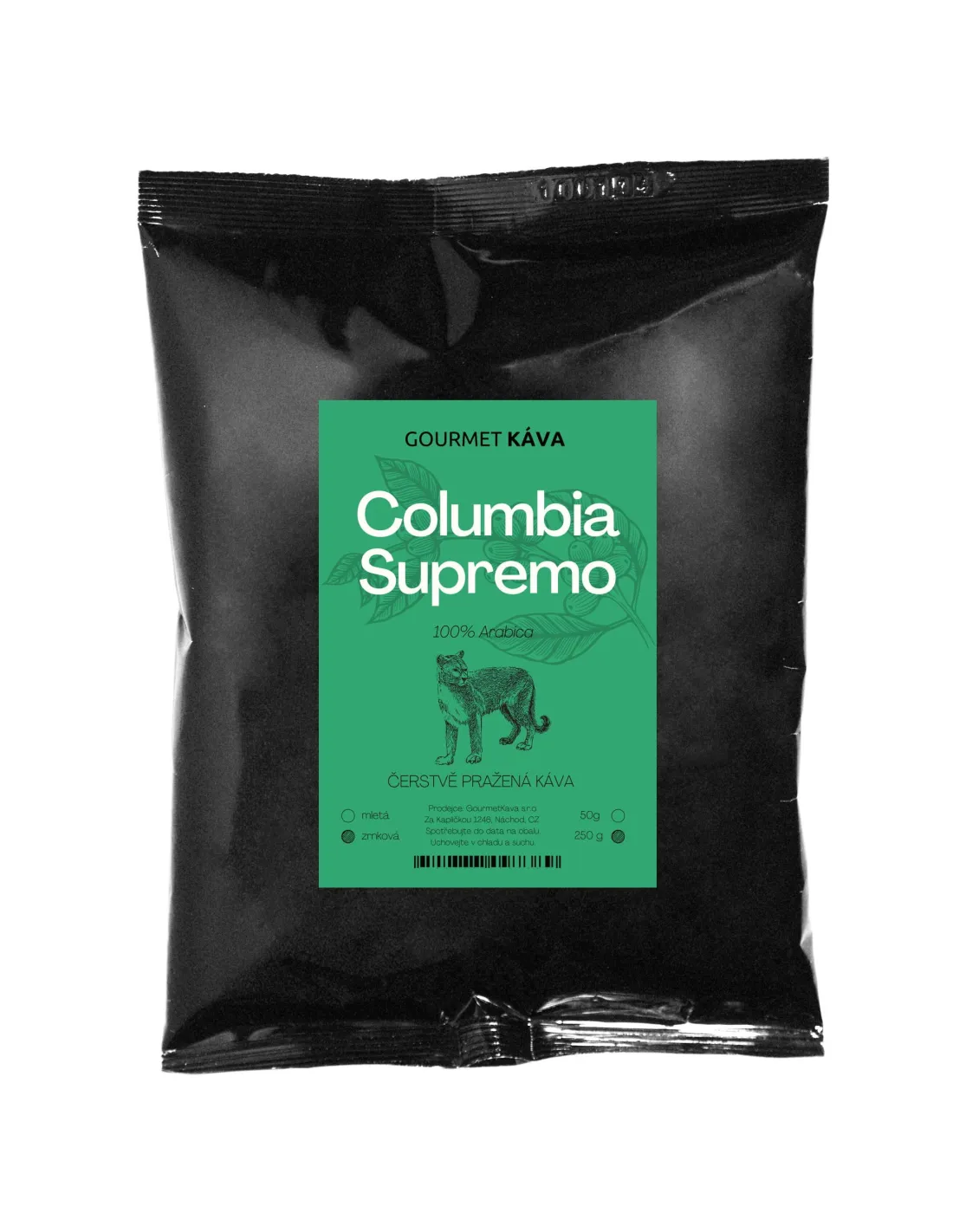 Вкус: Colombia Supremo има сладък, кадифен вкус със силен аромат, напомнящ на портокали или бергамот. Тялото е красиво, пълно и силно, с фино разпознаваема киселинност, съчетана с шоколадови и плодови нотки. Това е много балансирано кафе, в което вкусът, ароматът, киселинността и другите характеристики се допълват чудесно и образуват перфектно цяло.