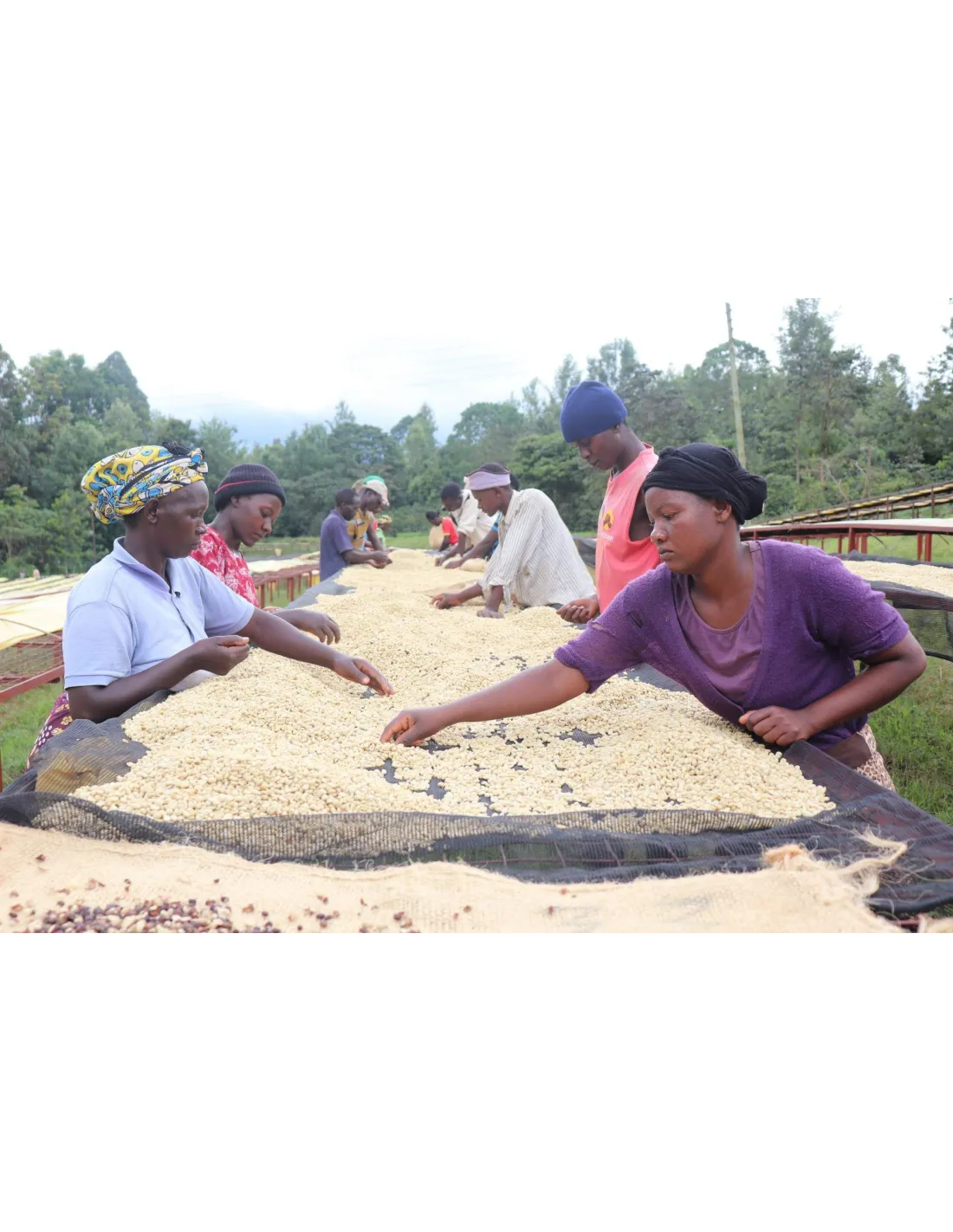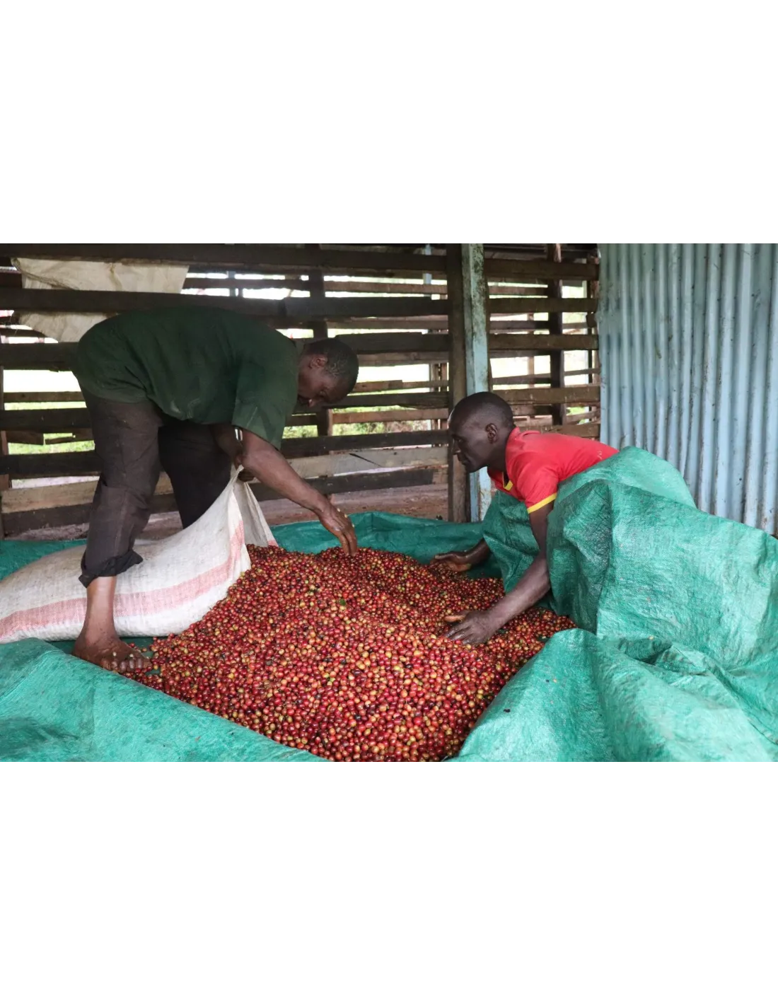 Заводът за преработка Mutitu функционира от 1963 г. Днес тя осигурява преработката на 1250 членове на кооператива, които обикновено притежават само около една пета от хектар земя. Но всички те работят в сърцето на известния регион Кириняга, дори в подножието на втората по височина планина в Африка - планината Кения. Освен това, благодарение на вулканичната скала, всички местни кафеени дървета разполагат с достатъчно минерални хранителни вещества. Така че след традиционното кенийско двойно измиване сега ви очаква прекрасна партида перлени зърна с характер на касис и цитрусови плодове. Самите перлени зърна се създават, като в черешата се развива само едно зърно вместо две, което е по-малко и по-кръгло - напомня на перли! Самите ние селектирахме мутитата миналата година в лабораторията на Dormans Coffee в Найроби. Благодарение на вакуумното опаковане на зелените зърна, те са все така сочни, както когато ги опитахме за първи път в Кения.