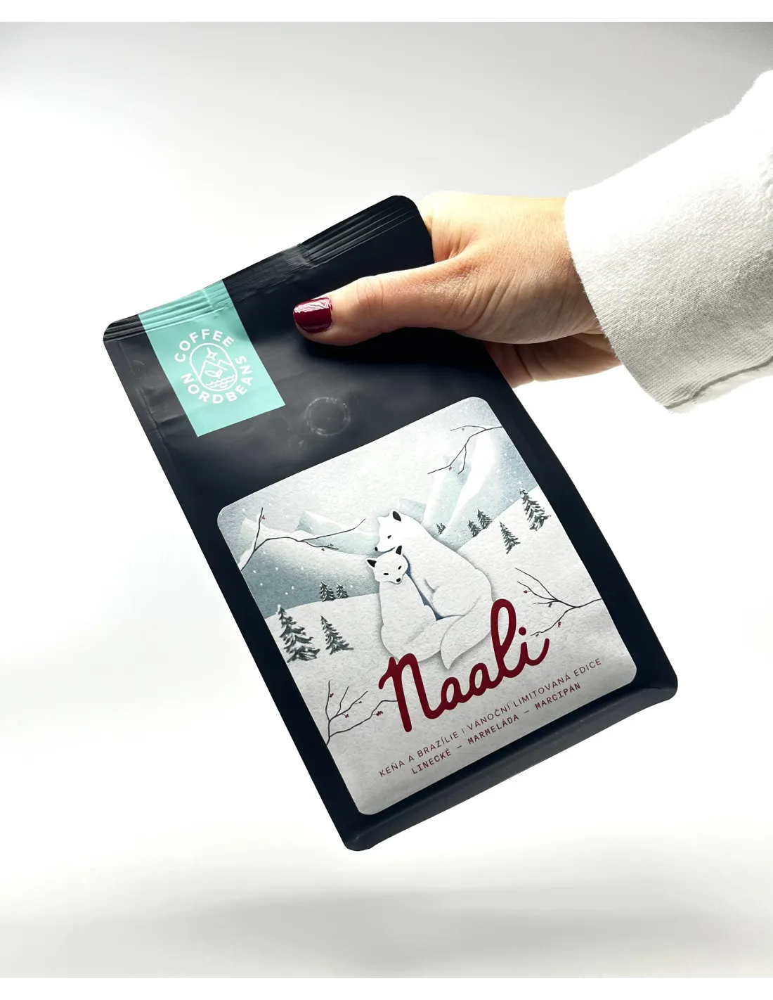 Наали, полярната лисица, символизира зимния сезон, когато природата се забавя. Нашето коледно кафе съчетава ароматни профили от Кения и Бразилия, предизвиквайки спомени за моменти с любимите хора, изпълнени със сладки нотки. Сладки нотки на линзер, мармалад и марципан