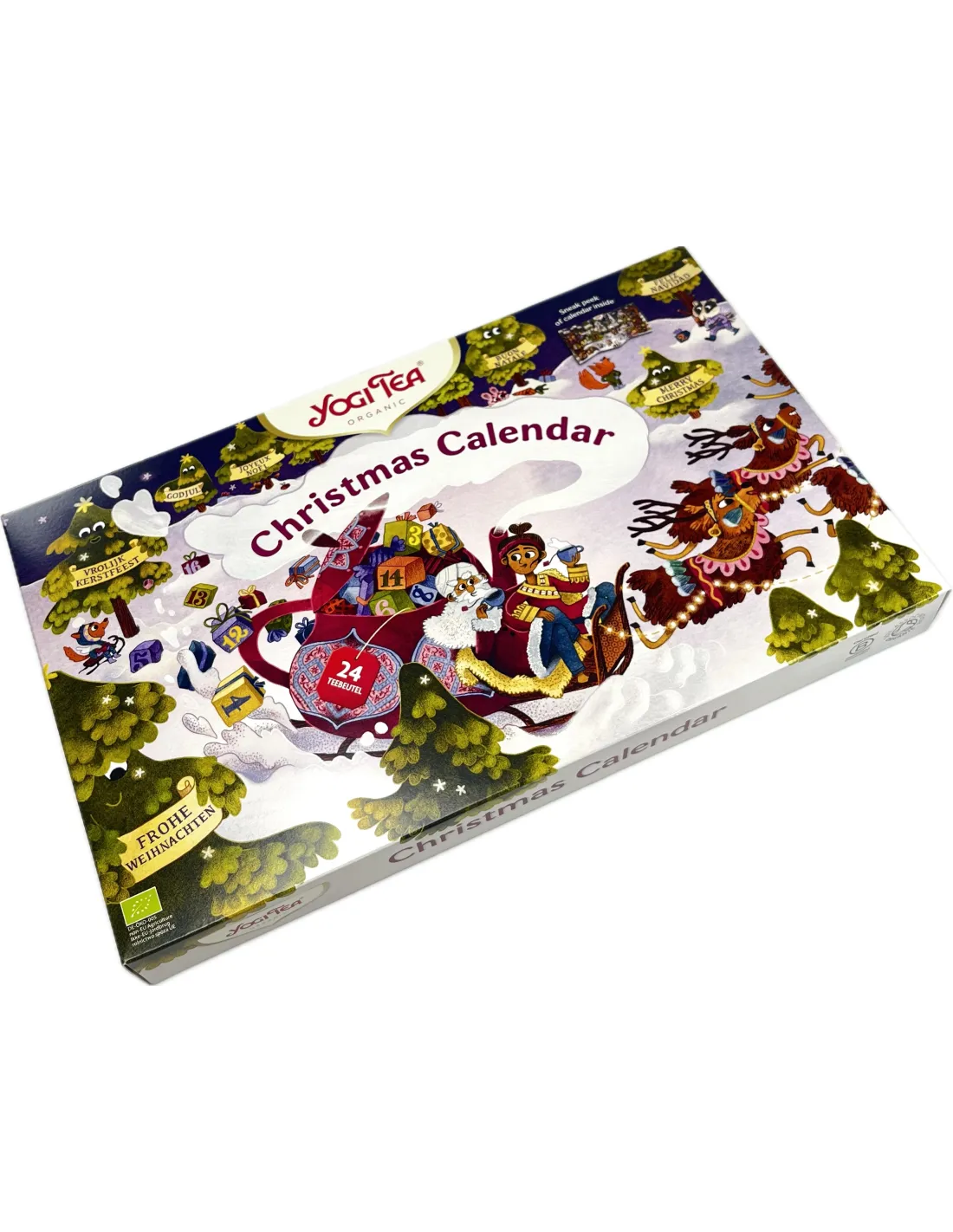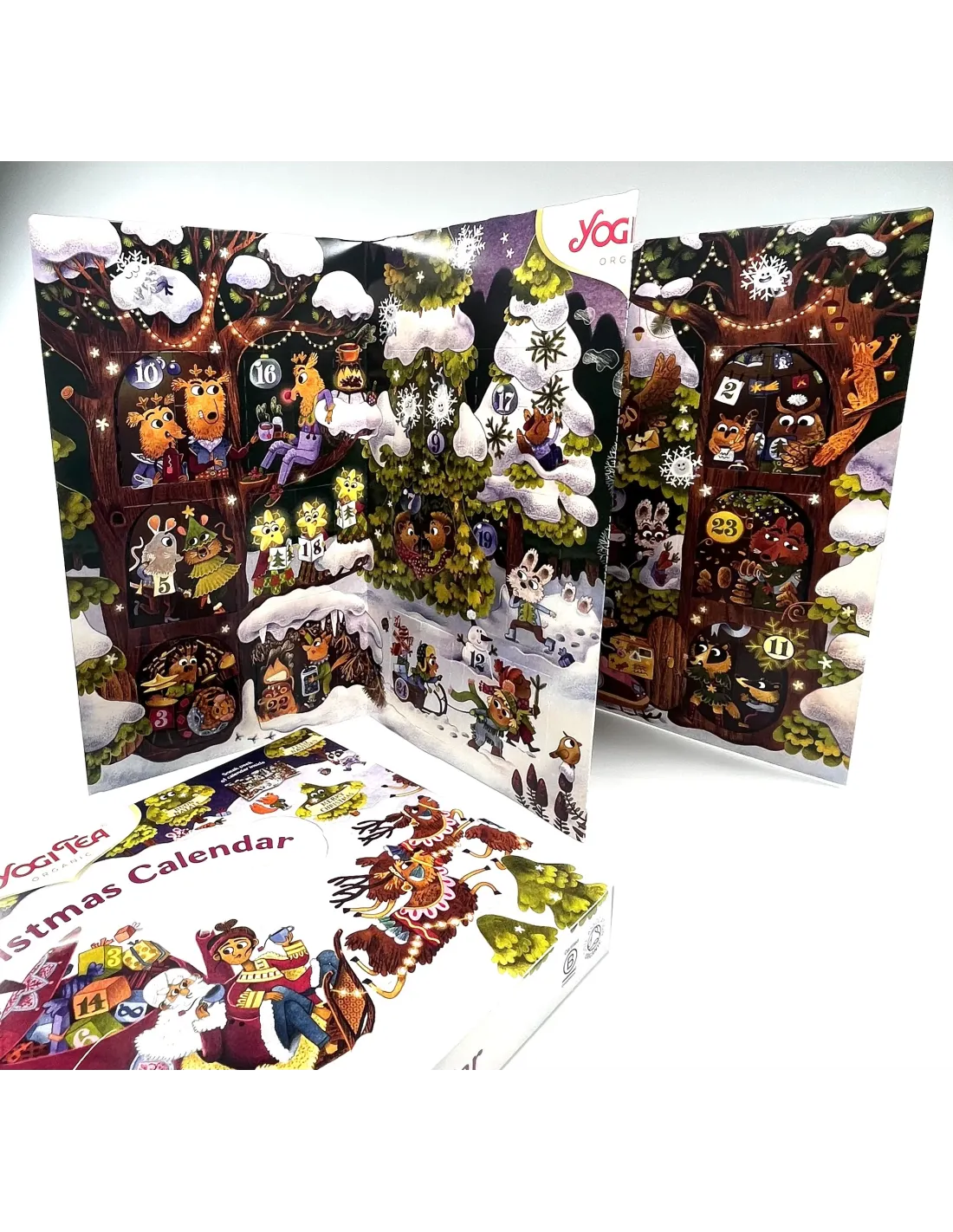 Този коледен календар на Адвент предлага 24 пакетчета с различни смеси от чай YOGI TEA®.