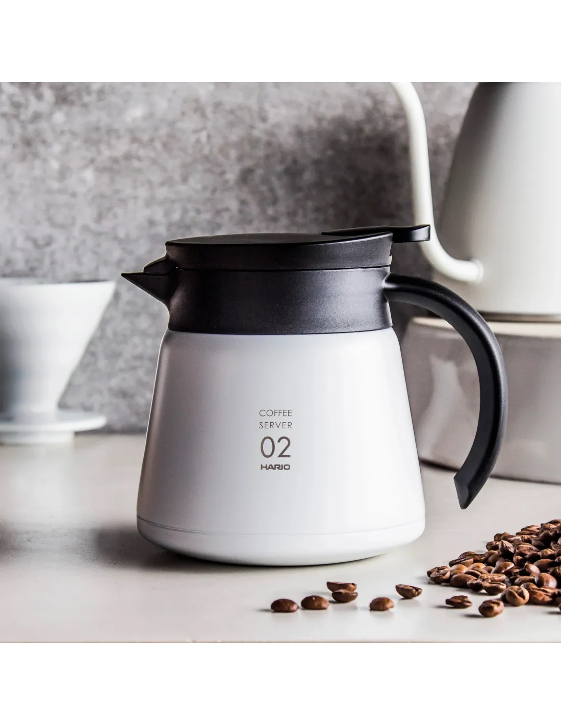 Просто ще харесате матовобелия и черния елегантен дизайн и прецизното изпълнение на сървъра Hario V60 Thermo.