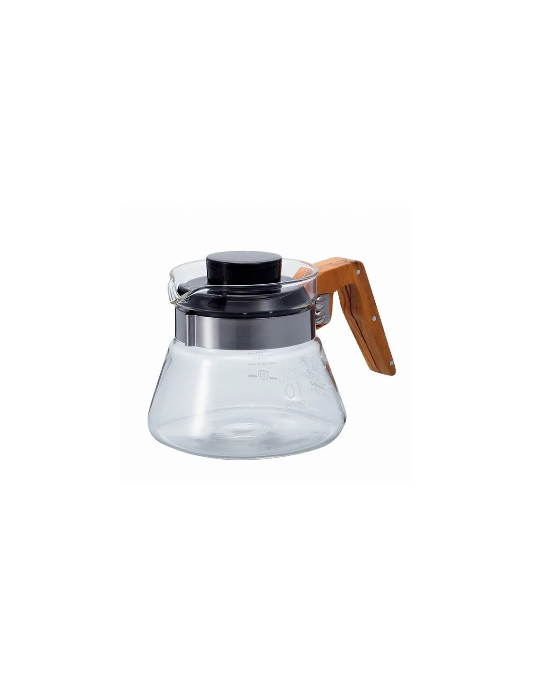 Луксозен стъклен съд за кафе с дръжка от маслиново дърво Hario Range Server 400ml за професионално сервиране на прясно кафе.