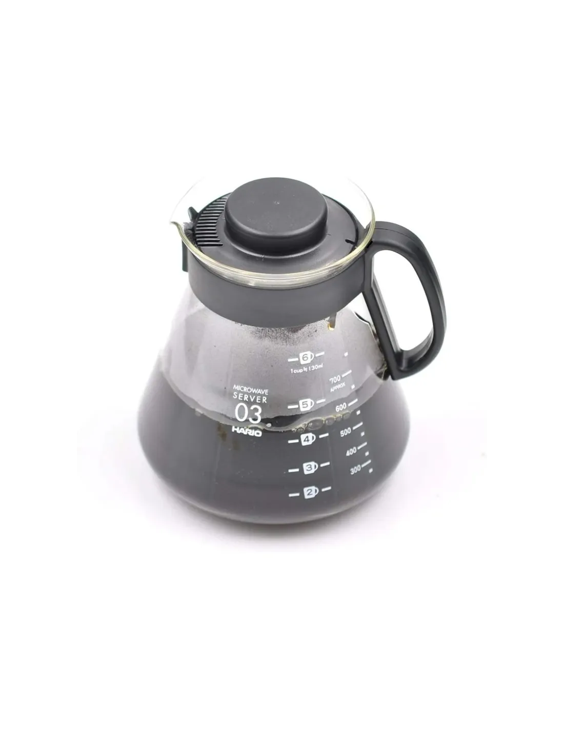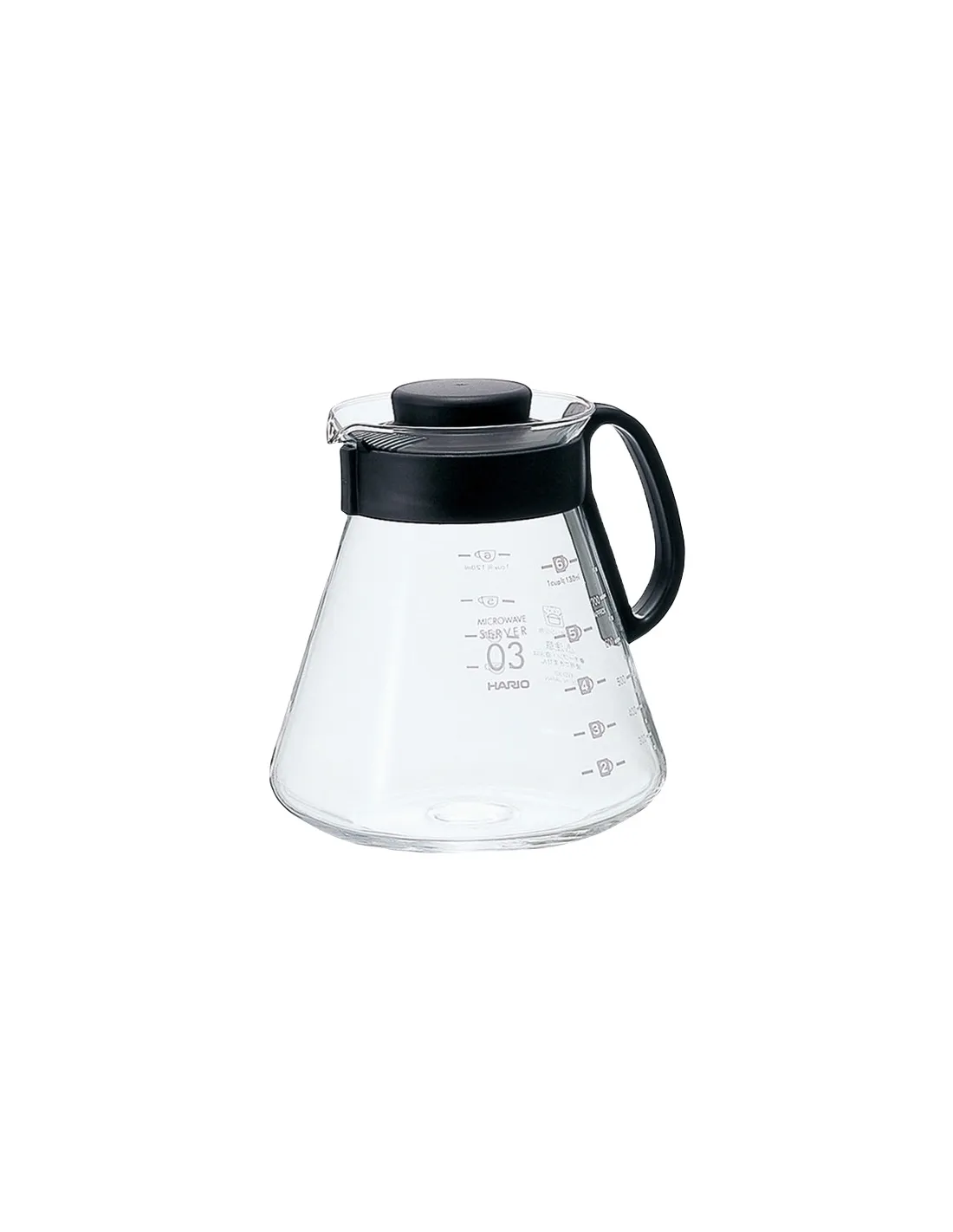 Кафеварка Hario V60 Range Server от термоустойчиво стъкло с обем 800 мл за професионално сервиране на прясно кафе. Подходяща и за микровълнова фурна.