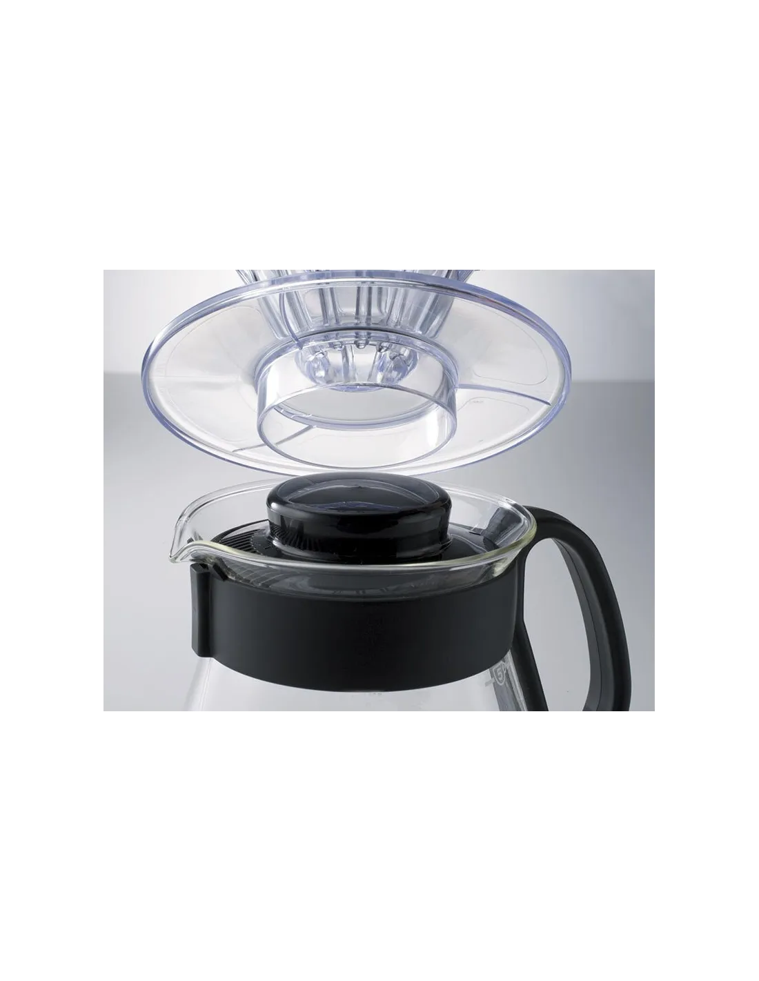 Каната е напълно съвместима с всички рипери от серията Hario V60. Просто поставете дрипъра върху съда и оставете кафето да се филтрира. Съдът е изработен от термоустойчиво стъкло , а капакът запазва кафето ви горещо по-дълго време. Ще оцените цедката, която е включена в капака, в случай че приготвяте билков чай в чайника.