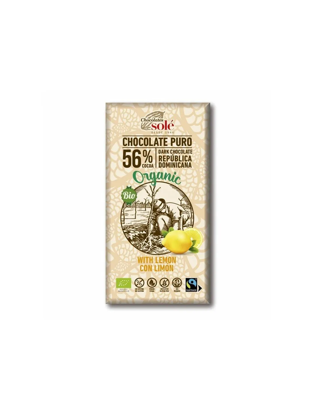 Шоколади Solé - 56% органичен шоколад с лимон. Деликатни нотки на лимон в тъмен шоколад.