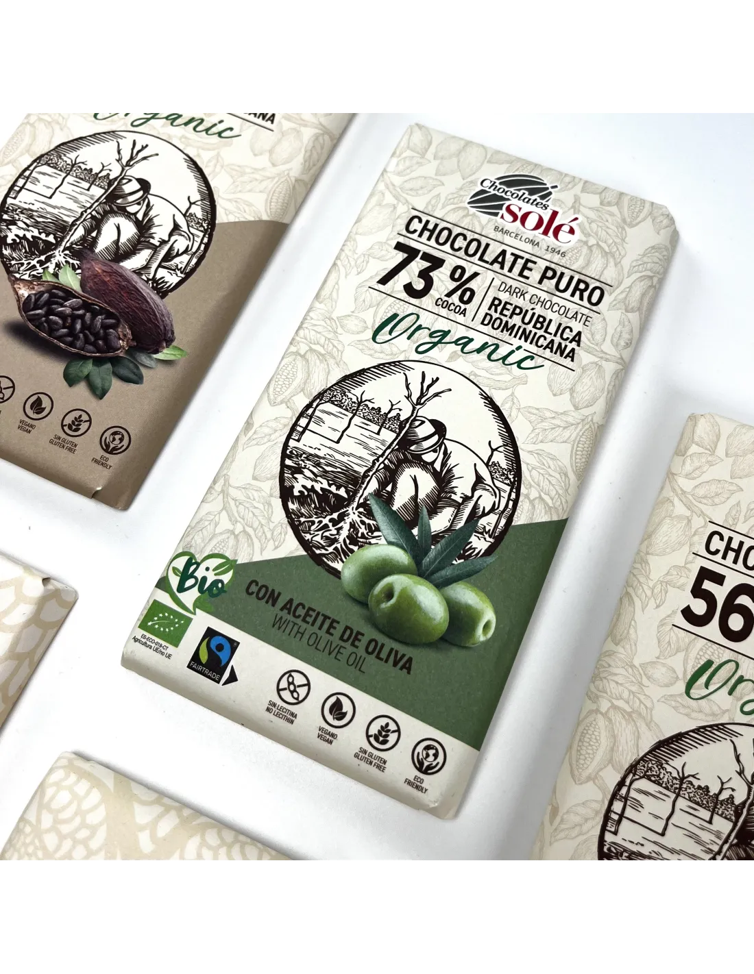 Шоколади Solé - 73% органичен шоколад със зехтин. Свеж полъх на Средиземноморието. Това е шоколад с екстра върджин зехтин.