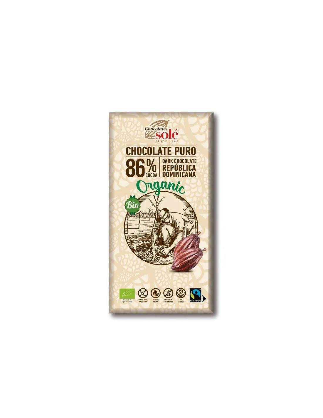 Съставки: какао (86%), какаово масло, тръстикова захар, ванилияКоличество: 100 гПроизводител: Chocolates Solé, Каталуния