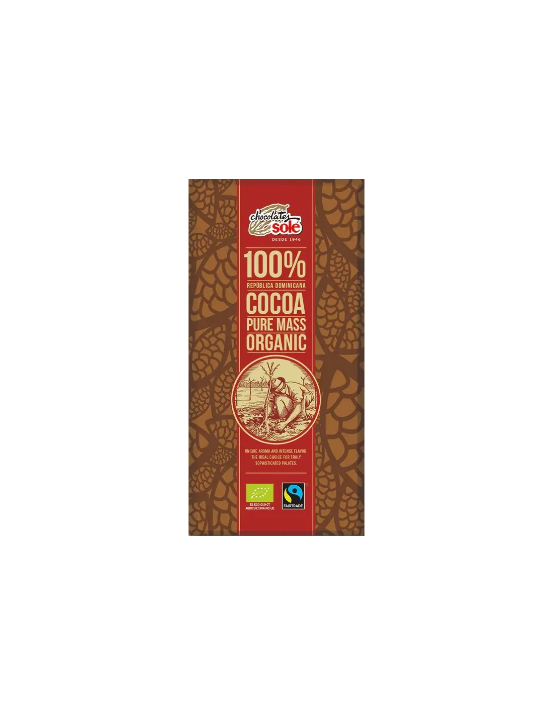 Уникален 100% тъмен "шоколад", който съдържа само какаова маса от доминиканско справедливо търгувано органично какао. Интензивният му вкус е за истинските любители на шоколада.