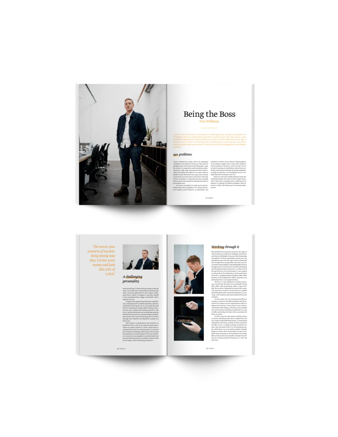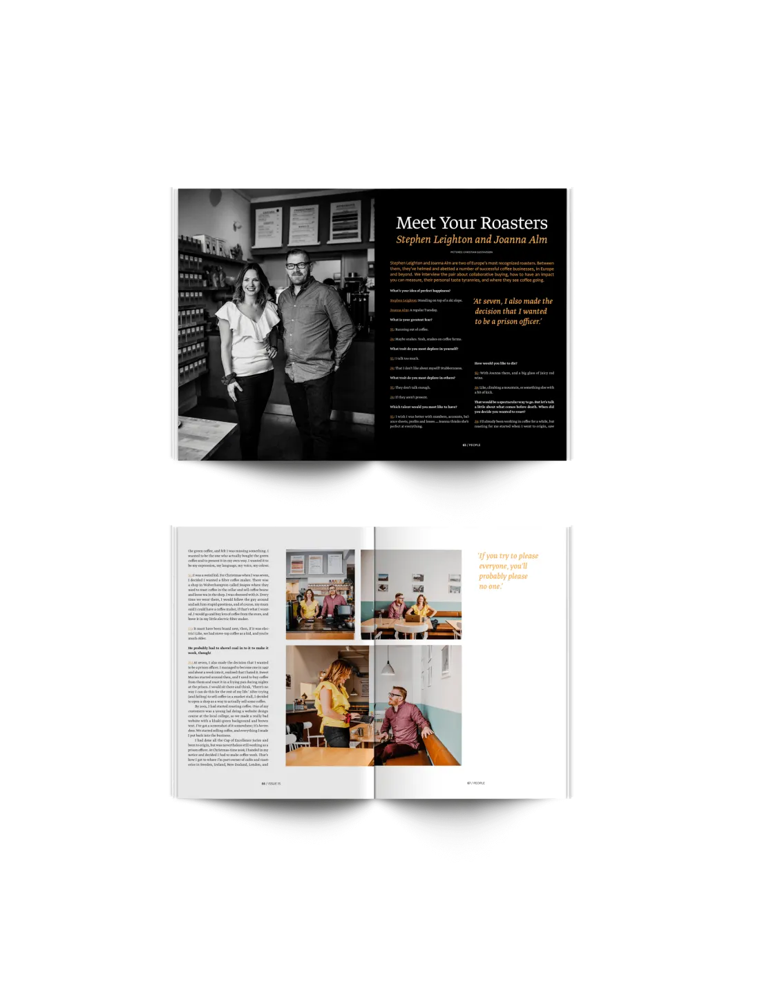 Главата "Хората " е изпълнена с истории за хората, които създават кафеената индустрия - от интервюта със световноизвестните пекари Стивън Лейтън и Джоана Алм, през разкази за живота в Ню Йорк, до красиво поднесените спомени за житейските уроци на Тим Уилямс.