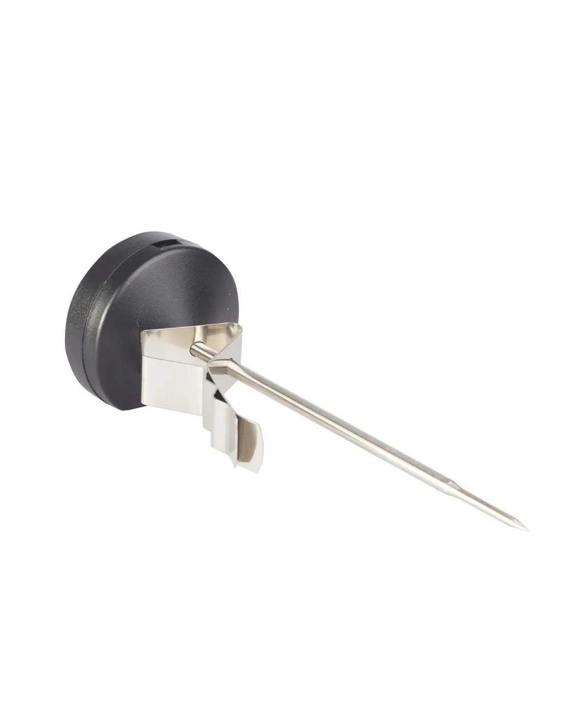 Термометърът измерва с помощта на дълга игла. Клипсът от неръждаема стомана улеснява закрепването на термометъра към латерната или друг чайник, а чрез преместването му можете да регулирате дължината на иглата. Тази дръжка също може да бъде отстранена.