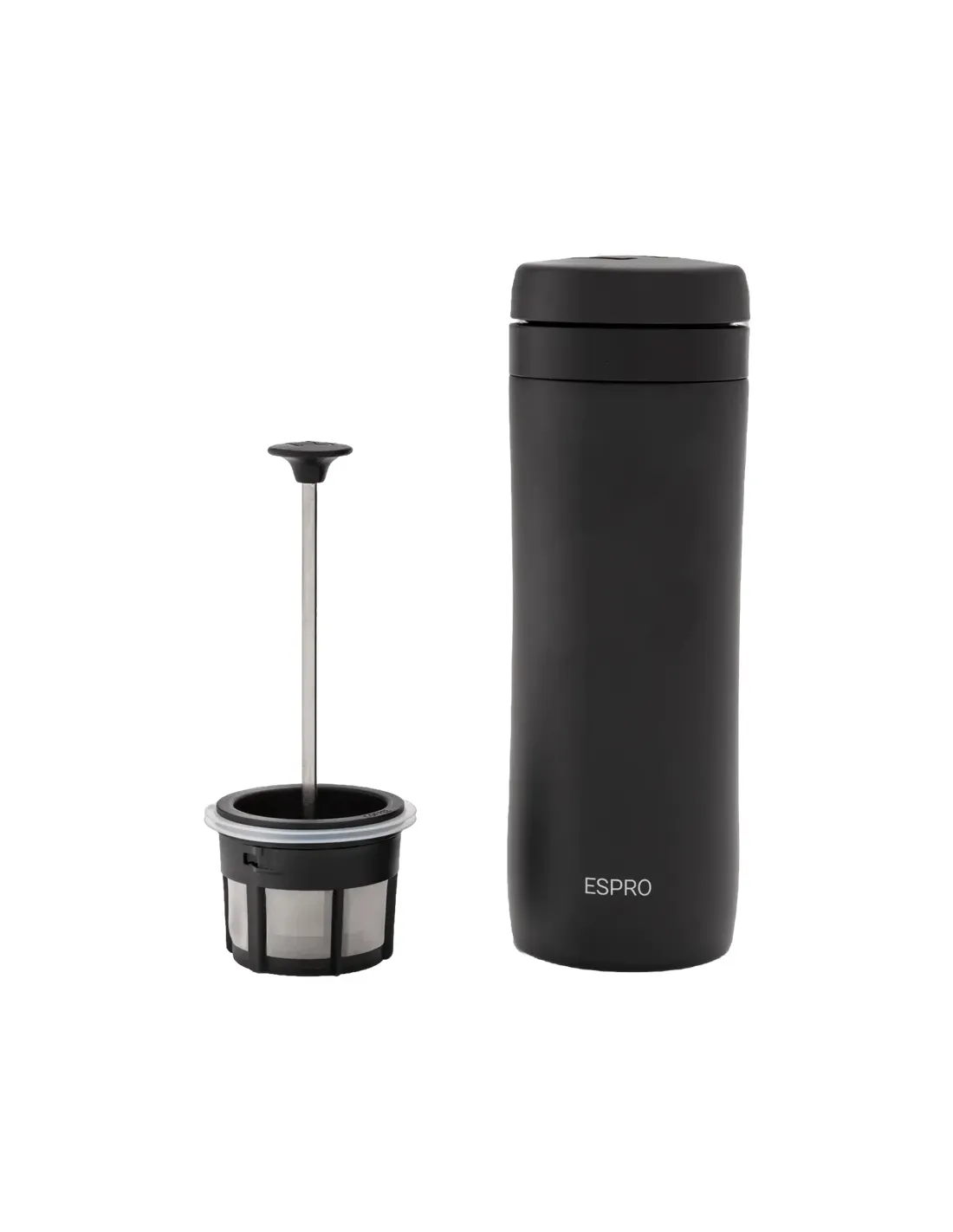 Двустенна преса Espro Travel Press от неръждаема стомана за приготвяне на френско кафе навсякъде по време на път. Патентованият двоен микрофилтър осигурява богат вкус без утайка от кафе. Термос с вместимост 450 ml.