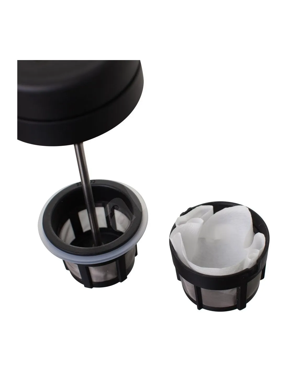 Пакетът включва: - 2 филтъра с различна финост на ситото за различна грубост на кафето и влияние на екстракцията - термос и капак