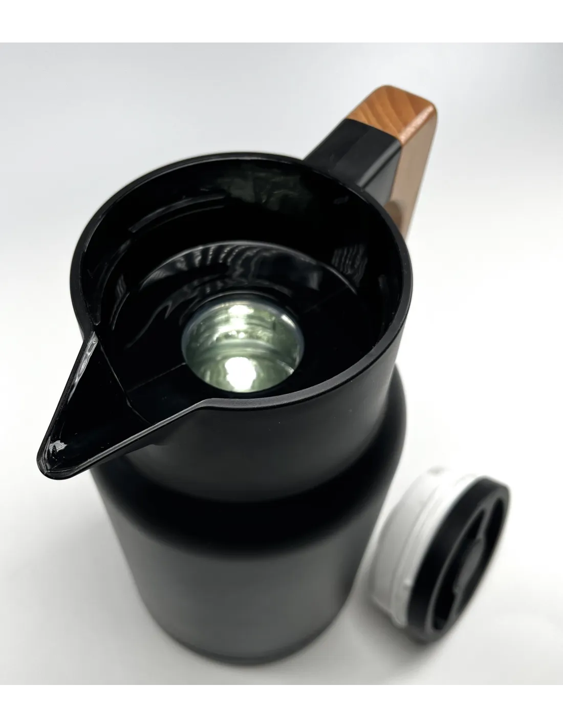 Термос Kaffia 1 л с дървена дръжка - ЧЕРЕН
