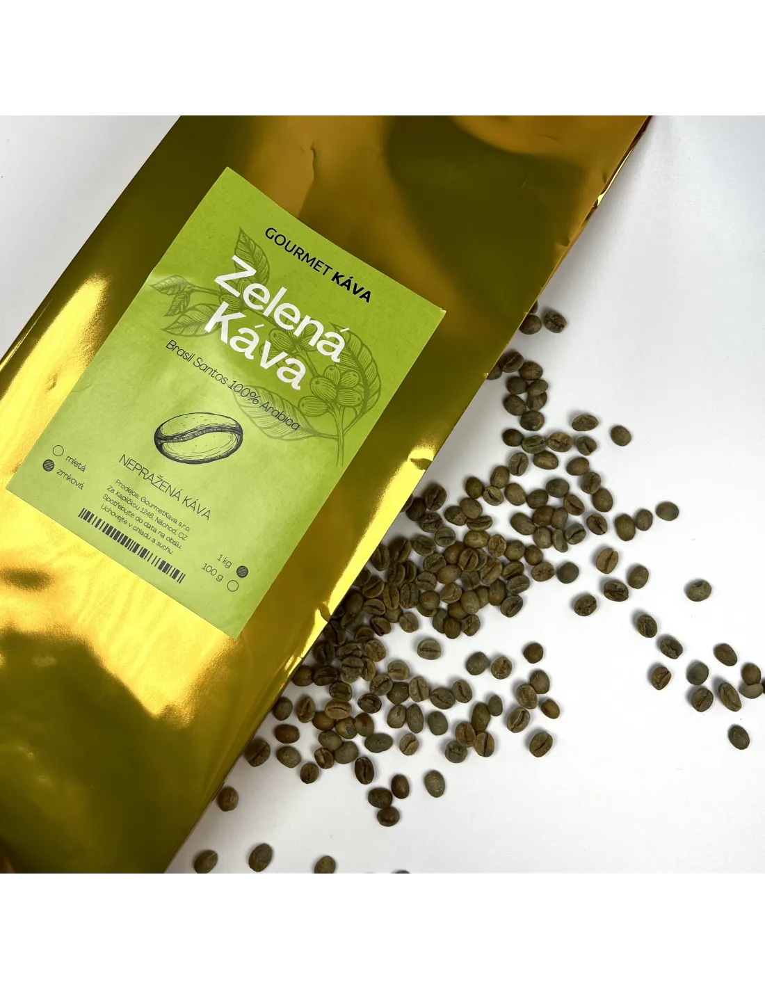 Зелени непечени кафеени зърна Бразилия Santos, 100% арабика! Подходящо за отслабване и детоксикация. За разлика от традиционното печено кафе, зеленото кафе съдържа и повече кофеин.
